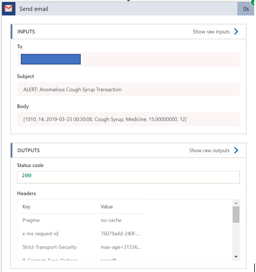 We will use Azure Logic Apps to trigger an email message to send with the flagged transaction information. A guide on how to set this up can be found here.